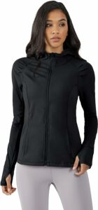 - Yogalicious Lightweight Full-Zip Hooded Workout Jacket: A stellar 4.6 out of 5 stars rating. Priced at $35.99, this jacket combines lightweight design with functionality, featuring thumbholes for a snug fit.